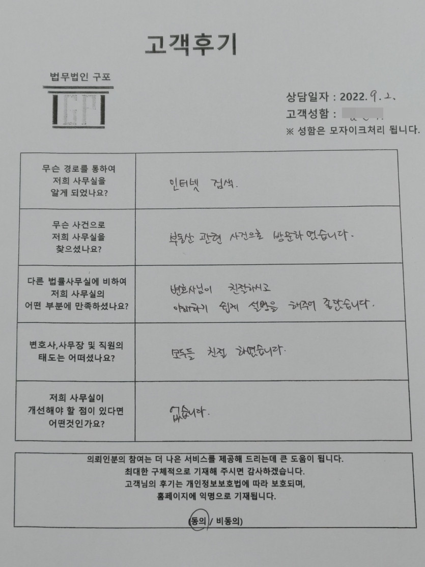 클릭해서 더보기 => < 민사 (부동산관련 방문상담) > 의뢰인분의 실제 고객후기 페이지 정보 최고관리자 작성일22-09-02 목록 본문 <민사 (부동산관련 방문상담) > 의뢰인분의 실제 고객후기 (화면 확대조절 가능합니다.) 목록