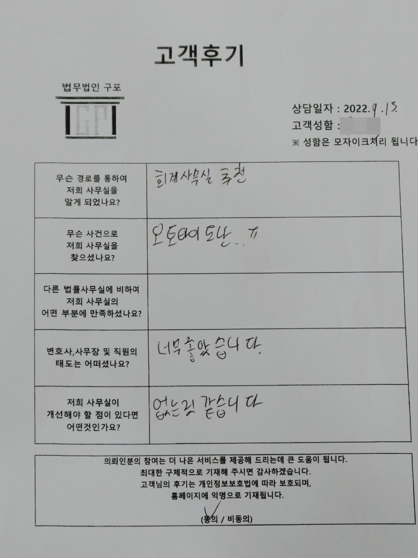 클릭해서 더보기 => < 형,민사 (오토바이도난 방문상담) > 의뢰인분의 실제 고객후기 페이지 정보 최고관리자 작성일22-09-13 목록 본문 < 형, 민사 (오토바이도난 방문상담) > 의뢰인분의 실제 고객후기 (화면 확대조절 가능합니다.) 목록