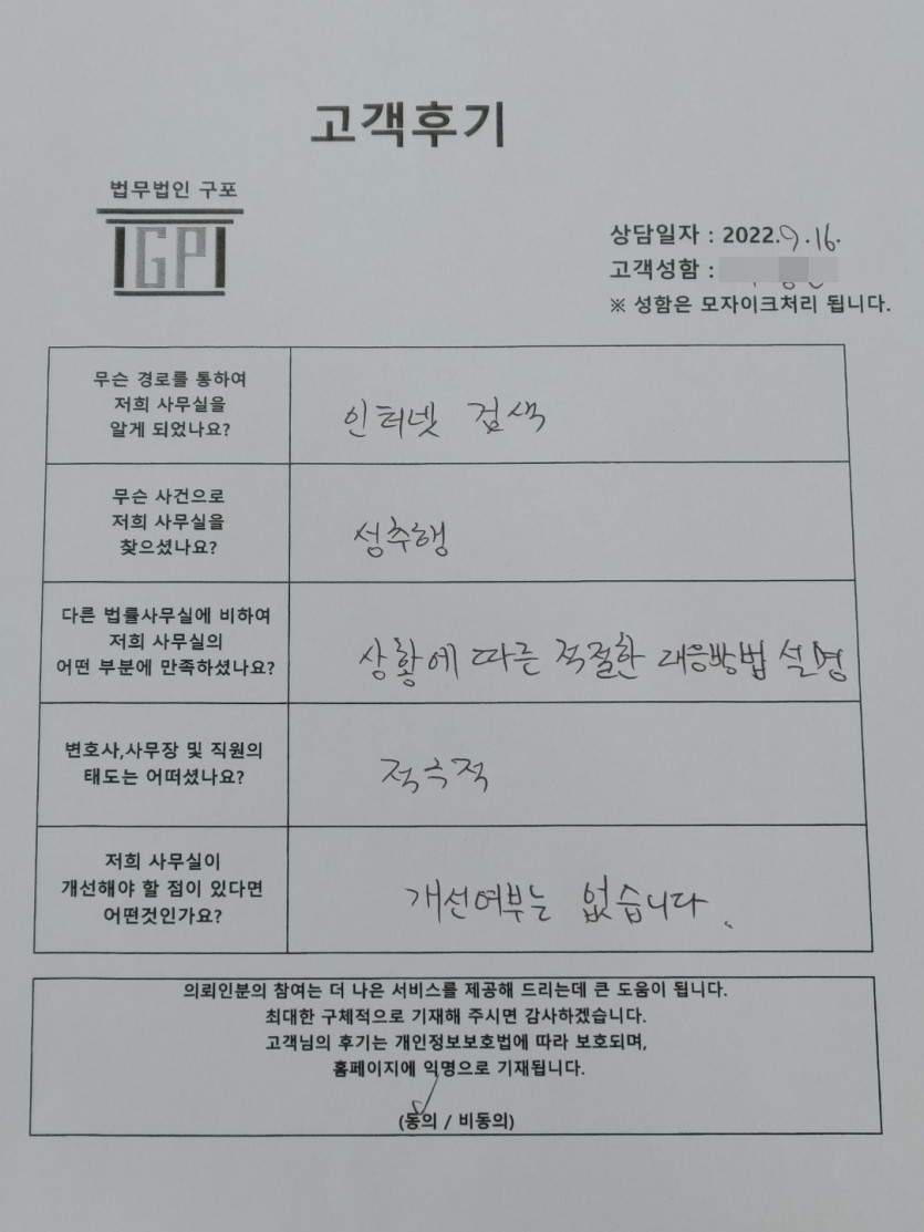 클릭해서 더보기 => < 형사 (성범죄_성추행 방문상담) > 의뢰인분의 실제 고객후기 페이지 정보 최고관리자 작성일22-09-16 목록 본문 < 형사 (성추행 방문상담) > 의뢰인분의 실제 고객후기 (화면 확대조절 가능합니다.) 목록