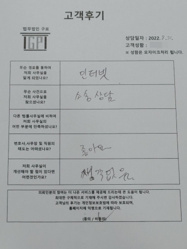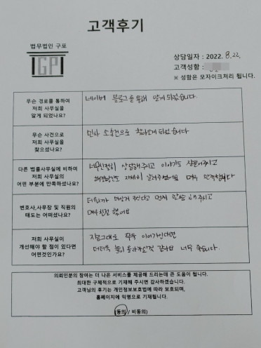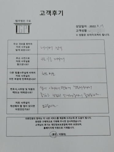 클릭해서 더보기 => <형,민사 (명의도용) 방문상담> 의뢰인분의 실제 고객후기