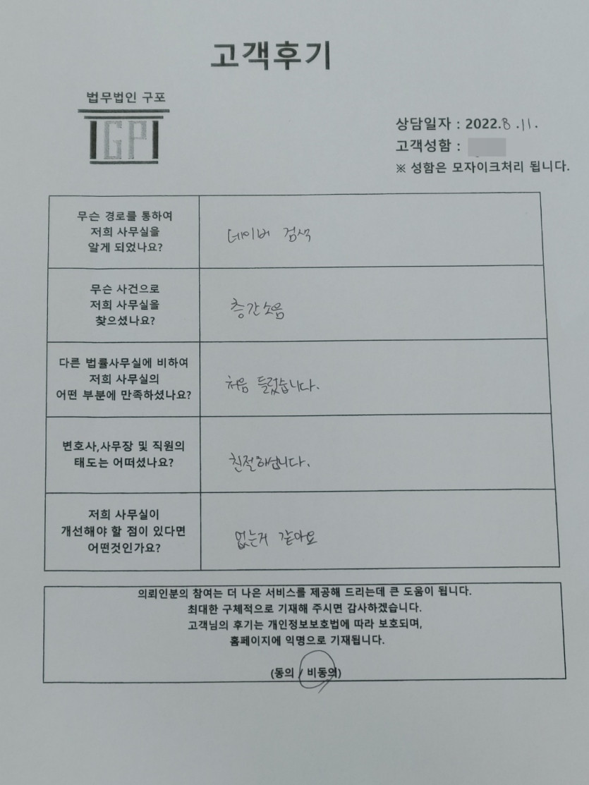 클릭해서 더보기 => <민사 (층간소음 방문상담)> 의뢰인분의 실제 고객후기 페이지 정보 최고관리자 작성일22-08-11 목록 본문 <민사 (층간소음 방문상담)> 의뢰인분의 실제 고객후기( 화면 확대조절 가능합니다. ) 목록