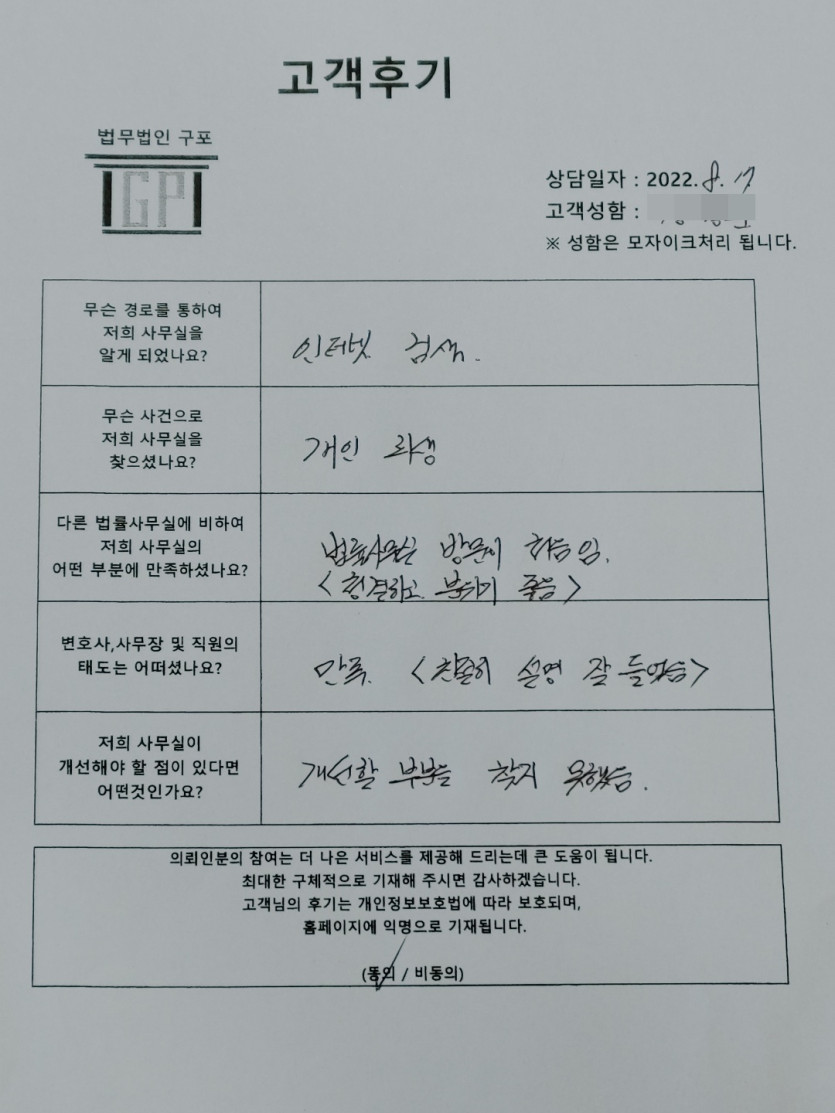 클릭해서 더보기 => <개인회생 방문상담> 의뢰인분의 실제 고객후기 페이지 정보 최고관리자 작성일22-08-18 목록 본문 <개인회생 방문상담> 의뢰인분의 실제 고객후기 (화면 확대조절 가능합니다) 목록