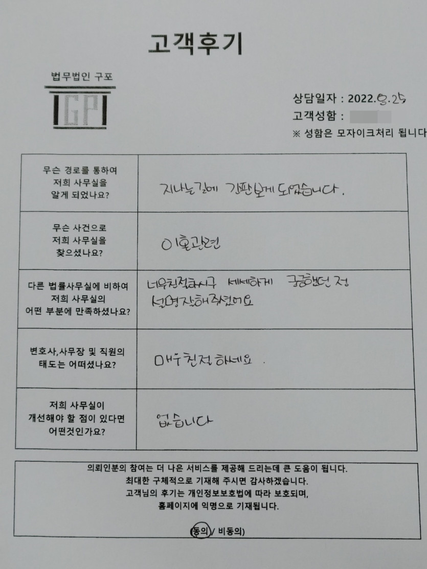 클릭해서 더보기 => < 민사 (이혼 방문상담) > 의뢰인분의 실제 고객후기 페이지 정보 최고관리자 작성일22-08-26 목록 본문 <민사 (이혼 방문상담) > 의뢰인분의 실제 고객후기 (화면 확대조절 가능합니다.) 목록
