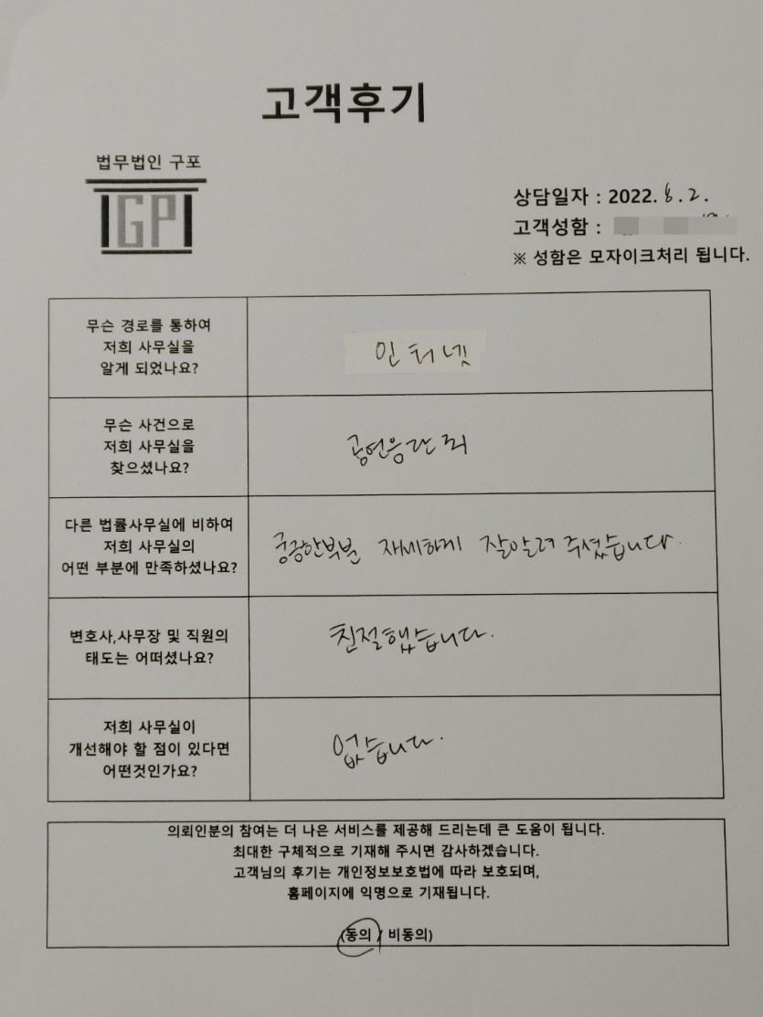 클릭해서 더보기 => <형사 (성범죄_공연음란죄 방문상담) > 의뢰인분의 실제 고객후기 페이지 정보 최고관리자 작성일22-08-02 목록 본문 아이고...직접적인 행위를 안하셨지만..상대방이 수치스럽거나,불쾌감을 느끼게 되었다고주장하게 되면 충분히 공연음란죄에 해당이 될 수 있는 부분입니다.대부분이 공연음란죄에 대해잘 모르시는 분들이 많기 때문에의뢰인분 또한 같은 상황이시니..부디 잘 해결되시기를 바라겠습니다.ㅠㅠ 목록