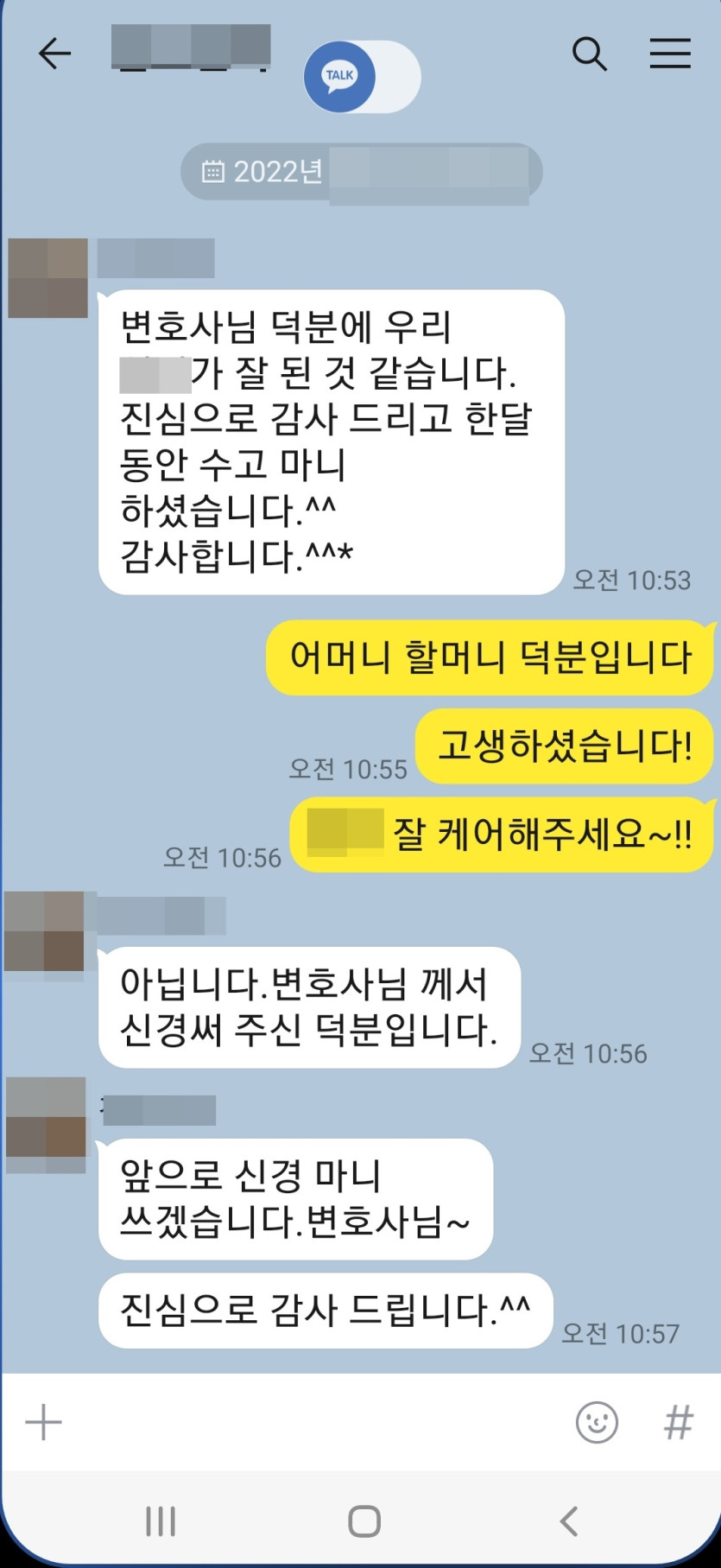 클릭해서 더보기 => < 형, 민사 (학교폭력) 의뢰인분의 사건종결 카톡후기 > 페이지 정보 최고관리자 작성일22-08-03 목록 본문 무사히 사건이 종결 되어 다행입니다. 그동안 고생 많으셨습니다. 법무법인 구포 변호인분들을 항상 믿어 주시고 기다려주셔서 감사합니다. 목록
