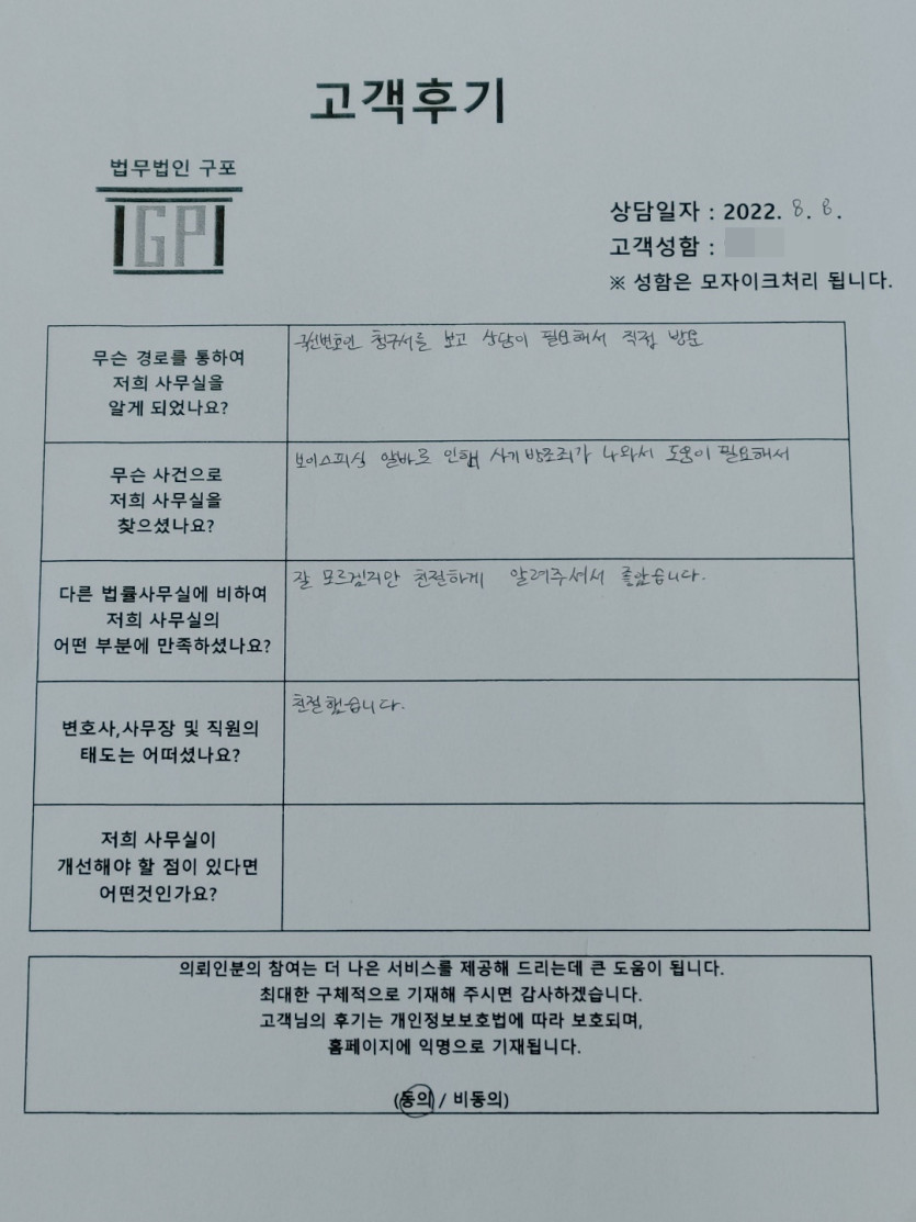 클릭해서 더보기 => <형사 (보이스피싱 방문상담) > 의뢰인분의 실제 고객후기 페이지 정보 최고관리자 작성일22-08-08 목록 본문 <형사 (보이스피싱 방문상담) > 의뢰인분의 실제 고객후기 ( 화면 확대조절 가능합니다. ) 목록
