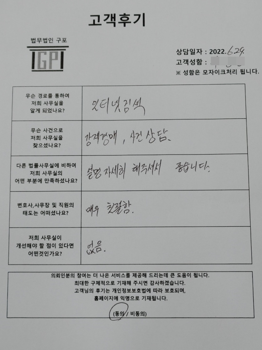 클릭해서 더보기 => < 민사 (부동산,강제경매) 방문상담> 의뢰인분의 실제 고객후기 페이지 정보 최고관리자 작성일22-06-29 목록 본문 <민사 (부동산,강제경매) 방문상담> 의뢰인분의 실제 고객후기 (화면 확대조절 가능합니다.) 목록