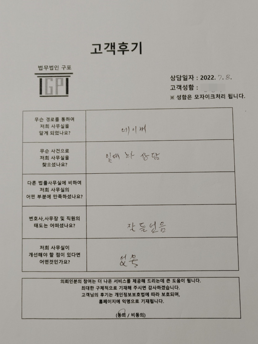 클릭해서 더보기 => <민사 (상가임대차) 방문상담> 의뢰인분의 실제 고객후기 페이지 정보 최고관리자 작성일22-07-08 목록 본문 <민사 (상가임대차) 방문상담> 의뢰인분의 실제 고객후기 (화면 확대조절 가능합니다.) 목록