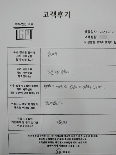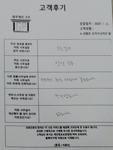 [민사] 손해배상청구소송 - 의뢰인분의 실제 고객후기