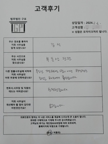 [민사] 부동산소송 - 의뢰인분의 실제고객후기