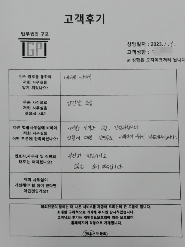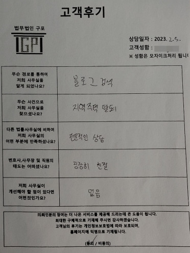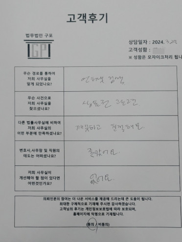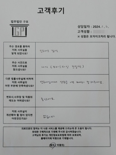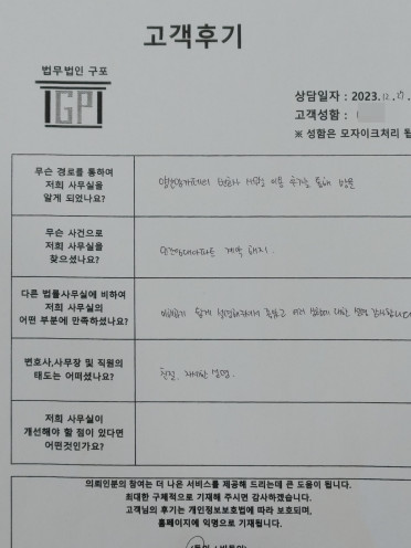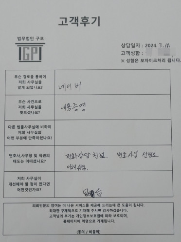 형사(형사 상담 ) 의뢰인분의 실제 고객후기