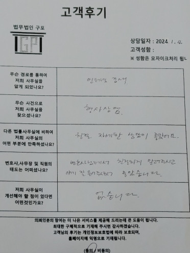 [형사] 사기사건 - 의뢰인분의 실제 고객후기