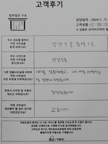 이혼 및 가사 (상간녀 소송 상담 ) 의뢰인분의 실제 고객후기