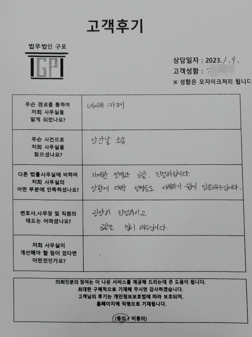 이혼 및 가사 (상간남 소송 상담 ) 의뢰인분의 실제 고객후기