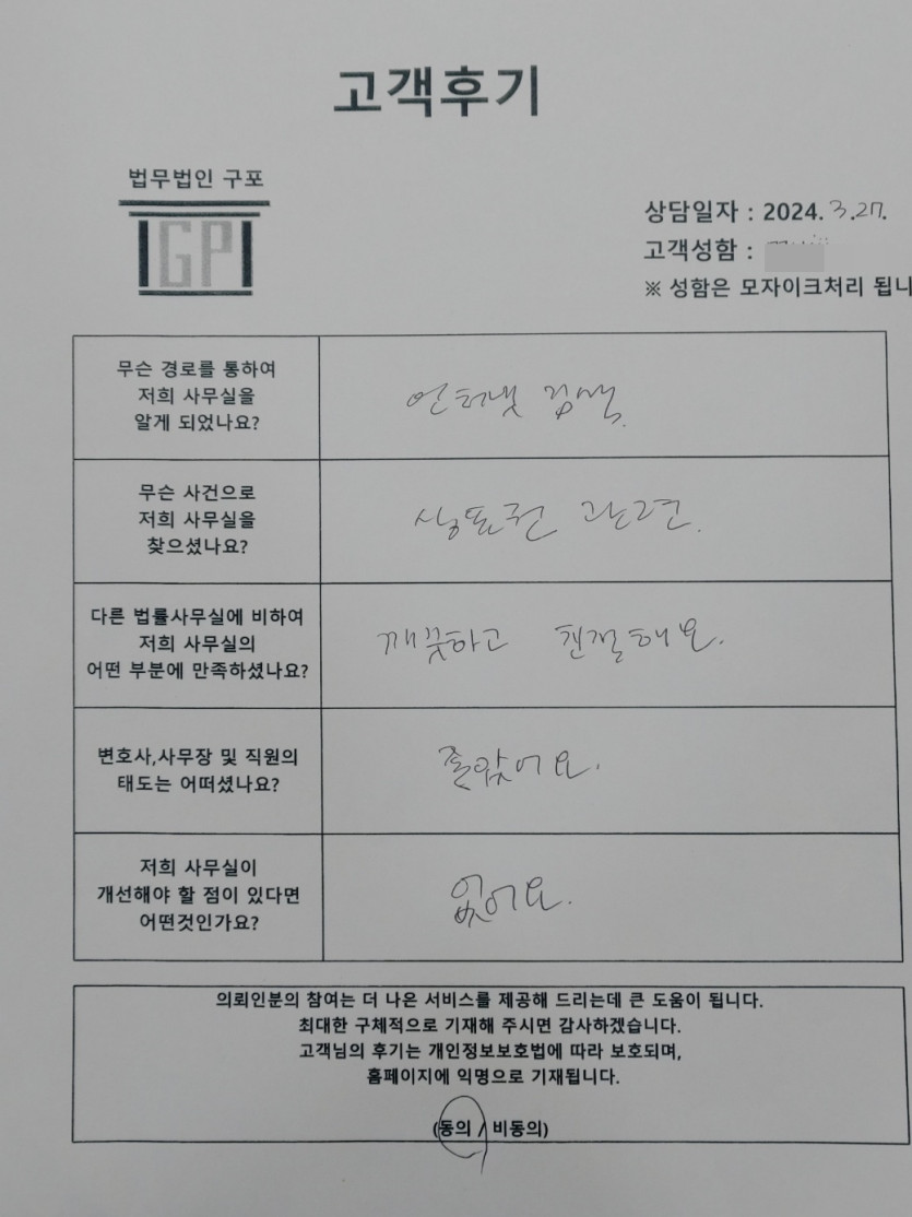 [민사] 상표권소송 - 의뢰인분의 실제 고객후기