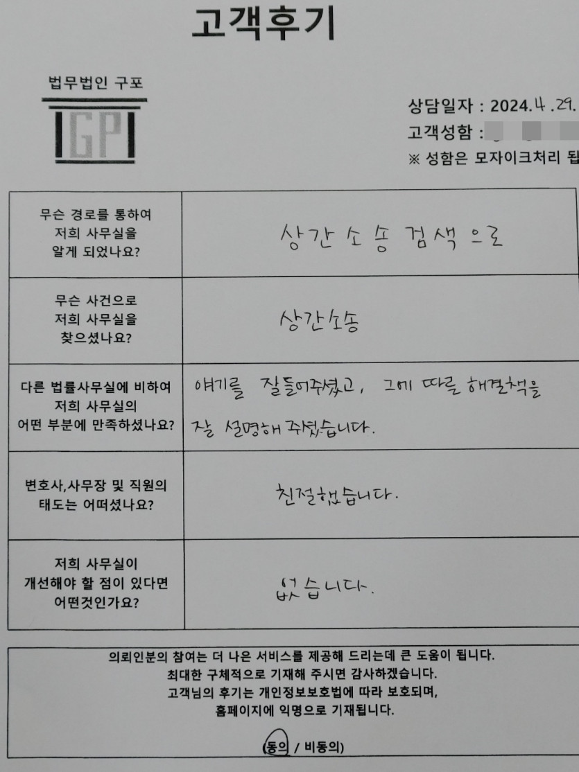 [이혼] 상간녀소송 - 의뢰인분의 실제 고객후기