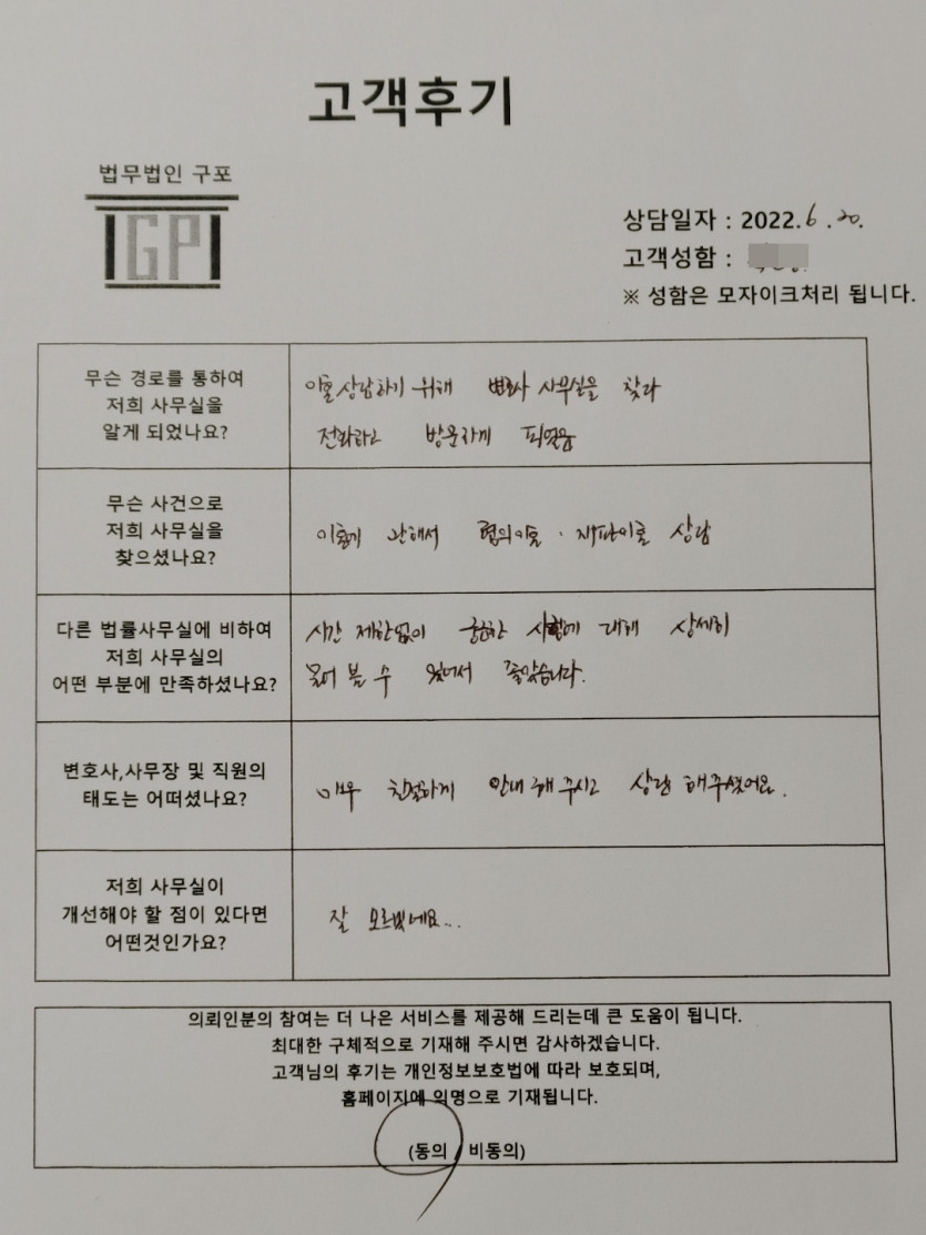 클릭해서 더보기 => < 민사 (이혼) 방문상담> 의뢰인분의 실제 고객후기 페이지 정보 최고관리자 작성일22-06-20 목록 본문 < 민사 (이혼) 방문상담> 의뢰인분의 실제 고객후기(화면 확대조절 가능합니다.) 목록
