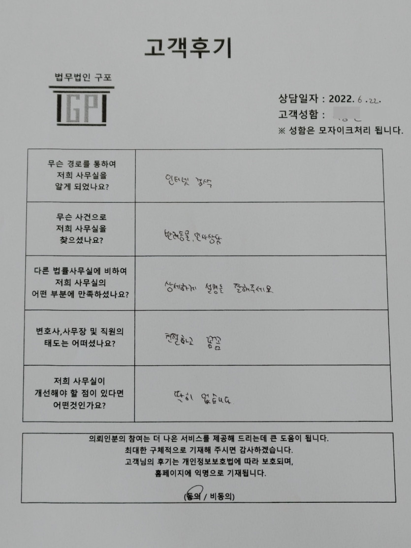 클릭해서 더보기 => < 민사 (반려동물) 방문상담> 의뢰인분의 실제 고객후기 페이지 정보 최고관리자 작성일22-06-22 목록 본문 < 민사 (반려동물) 방문상담> 의뢰인분의 실제 고객후기 (화면 확대조절 가능합니다.) 목록