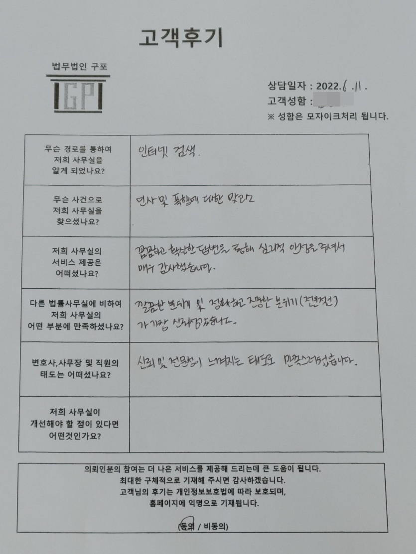 클릭해서 더보기 => < 민사 (폭행맞고소) 방문상담> 의뢰인분의 실제 고객후기 페이지 정보 최고관리자 작성일22-06-13 목록 본문 < 민사(폭행맞고소) 방문상담> 의뢰인분의 실제 고객후기 (화면 확대조절 가능합니다.) 목록