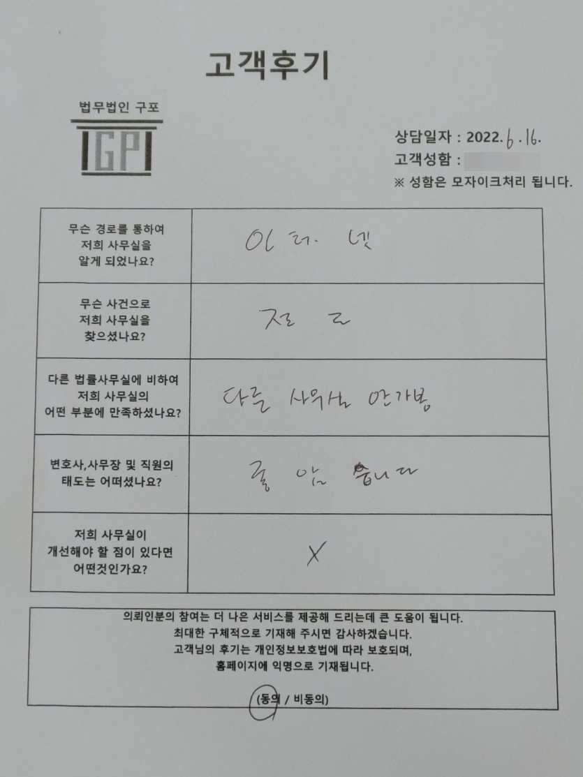 클릭해서 더보기 => < 형사 (사기_절도죄) 방문상담> 의뢰인분의 실제 고객후기 페이지 정보 최고관리자 작성일22-06-17 목록 본문 < 형사 (절도죄) 방문상담> 의뢰인분의 실제 고객후기(화면 확대조절 가능합니다.) 목록