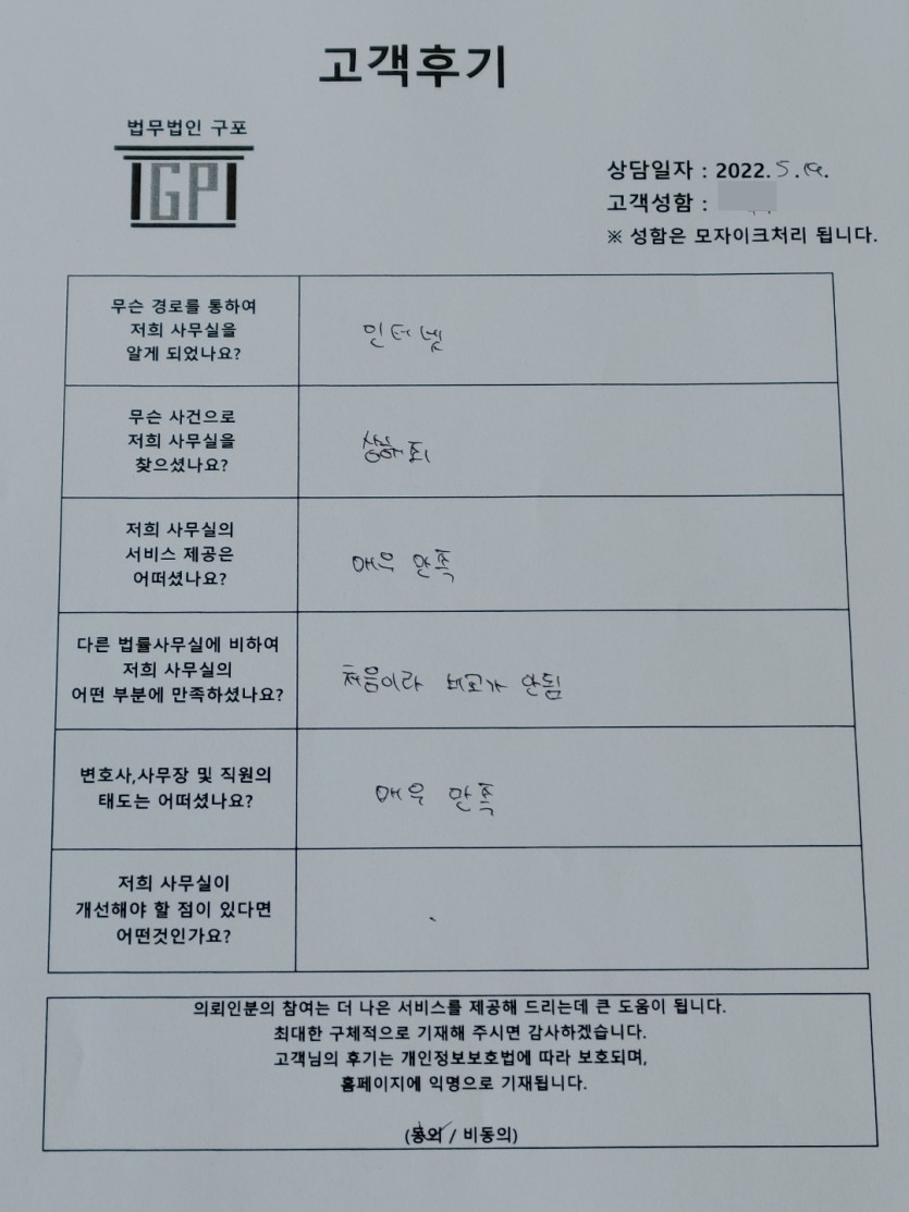 클릭해서 더보기 => <형사(상해죄) 방문상담> 의뢰인분의 실제 고객후기 페이지 정보 최고관리자 작성일22-05-19 목록 본문 <형사(상해죄) 방문상담> 의뢰인분의 실제 고객후기 (화면 확대조절 가능합니다) 목록