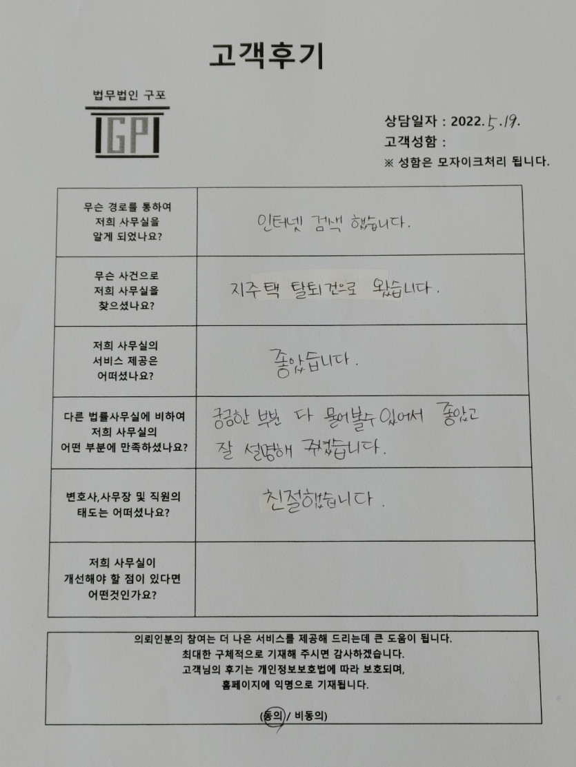 클릭해서 더보기 => <민사 (지역주택조합[지주택탈퇴] 방문상담> 의뢰인분의 실제 고객후기 페이지 정보 최고관리자 작성일22-05-19 목록 본문 <민사 (지역주택조합[지주택탈퇴] 방문상담> 의뢰인분의 실제 고객후기 (화면 확대조절 가능합니다) 목록
