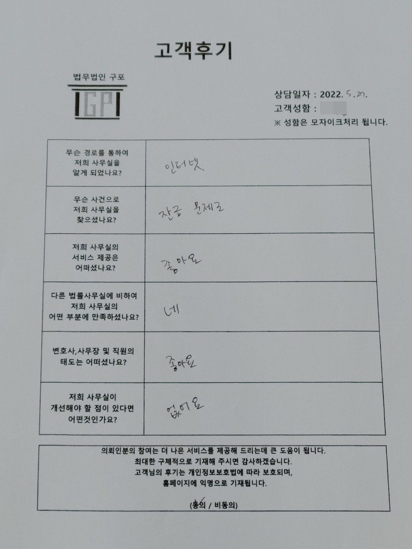 클릭해서 더보기 => <민사 (부동산매매) 방문상담> 의뢰인분의 실제 고객후기 페이지 정보 최고관리자 작성일22-05-27 목록 본문 <민사 (부동산매매) 방문상담> 의뢰인분의 실제 고객후기(화면 확대조절 가능합니다) 목록