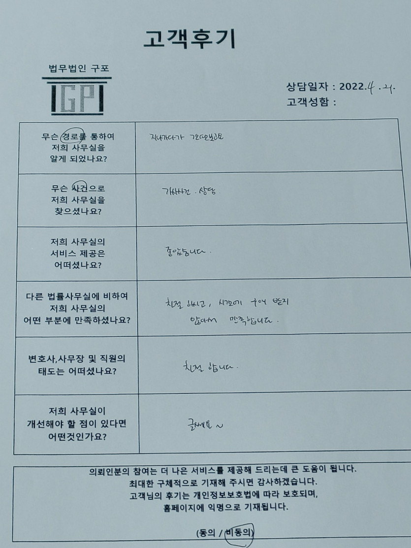 클릭해서 더보기 => <민사 (가사.이혼) 방문상담> 의뢰인분의 실제 고객후기 페이지 정보 최고관리자 작성일22-04-27 목록 본문 <민사 (가사.이혼) 방문상담> 의뢰인분의 실제 고객후기 (화면 확대 조절 가능합니다) 목록