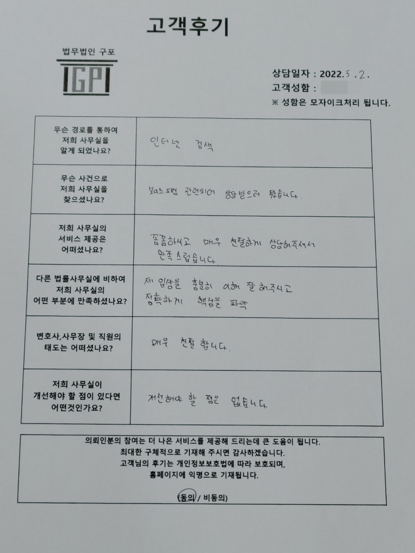 클릭해서 더보기 => <형사 (보이스피싱) 방문상담> 의뢰인분들의 실제 고객후기 페이지 정보 최고관리자 작성일22-05-02 목록 본문 <형사 (보이스피싱) 방문상담> 의뢰인분들의 실제 고객후기 (화면 확대 조절 가능합니다) 목록