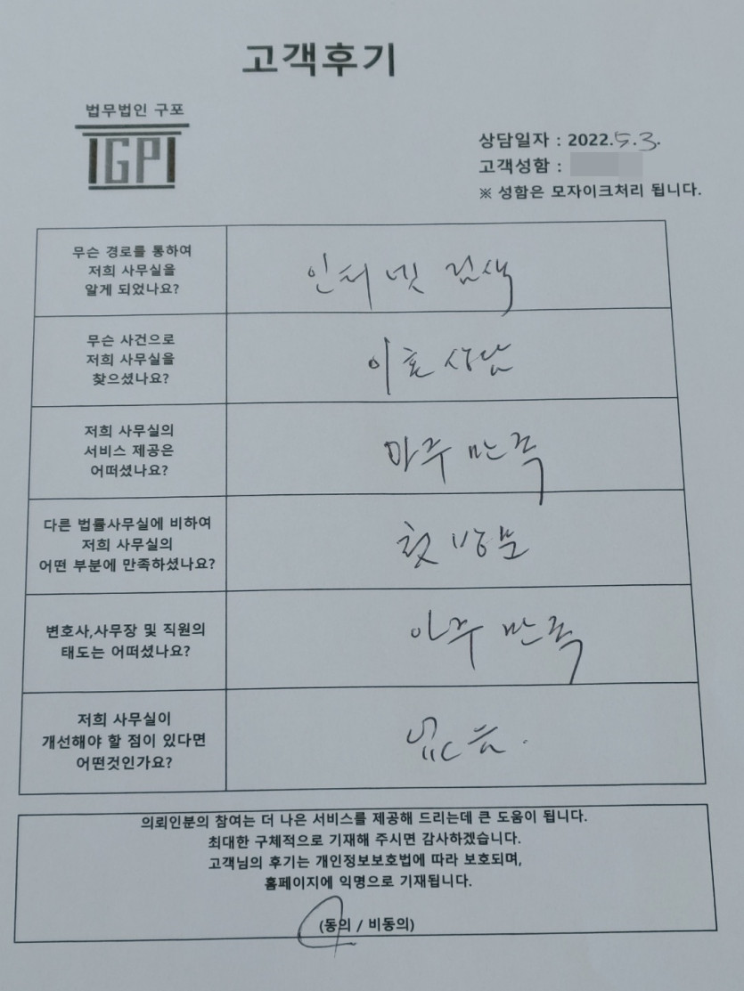 클릭해서 더보기 => <민사 (이혼) 방문상담> 의뢰인분들의 실제 고객후기