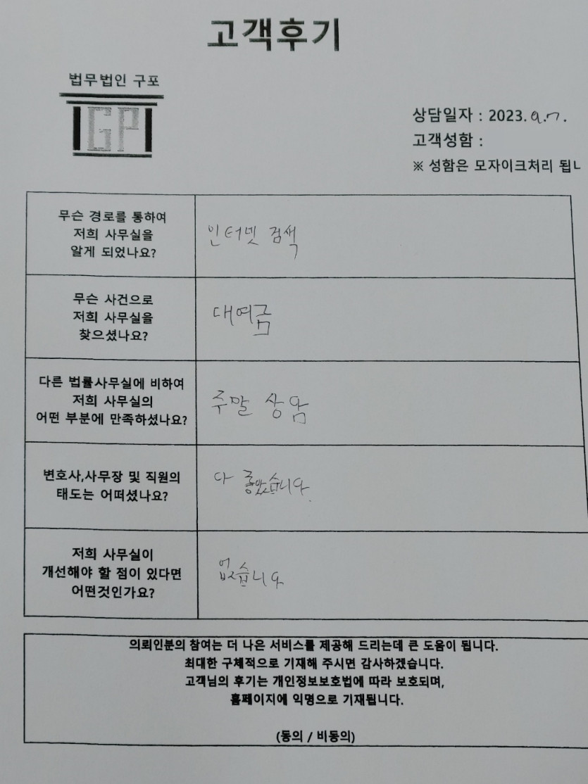 클릭해서 더보기 => 민사(대여금 상담 ) 의뢰인분의 실제 고객후기