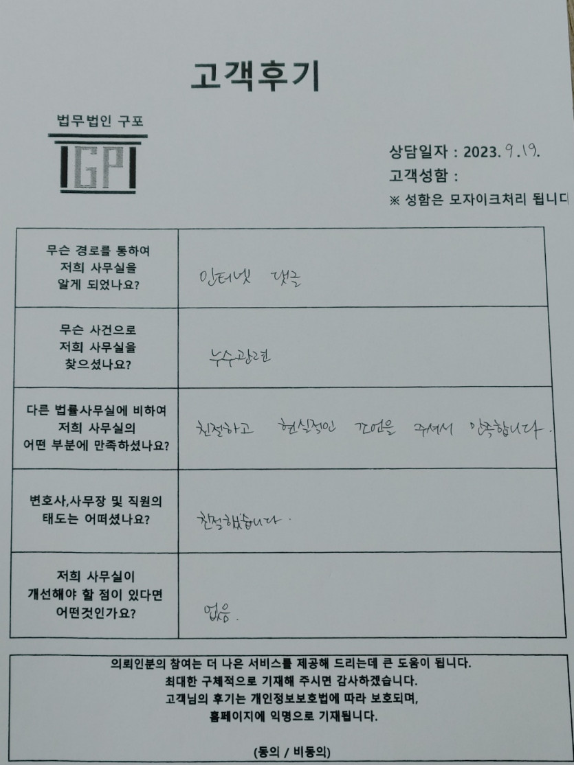 클릭해서 더보기 => 민사(누수관련 상담 ) 의뢰인분의 실제 고객후기