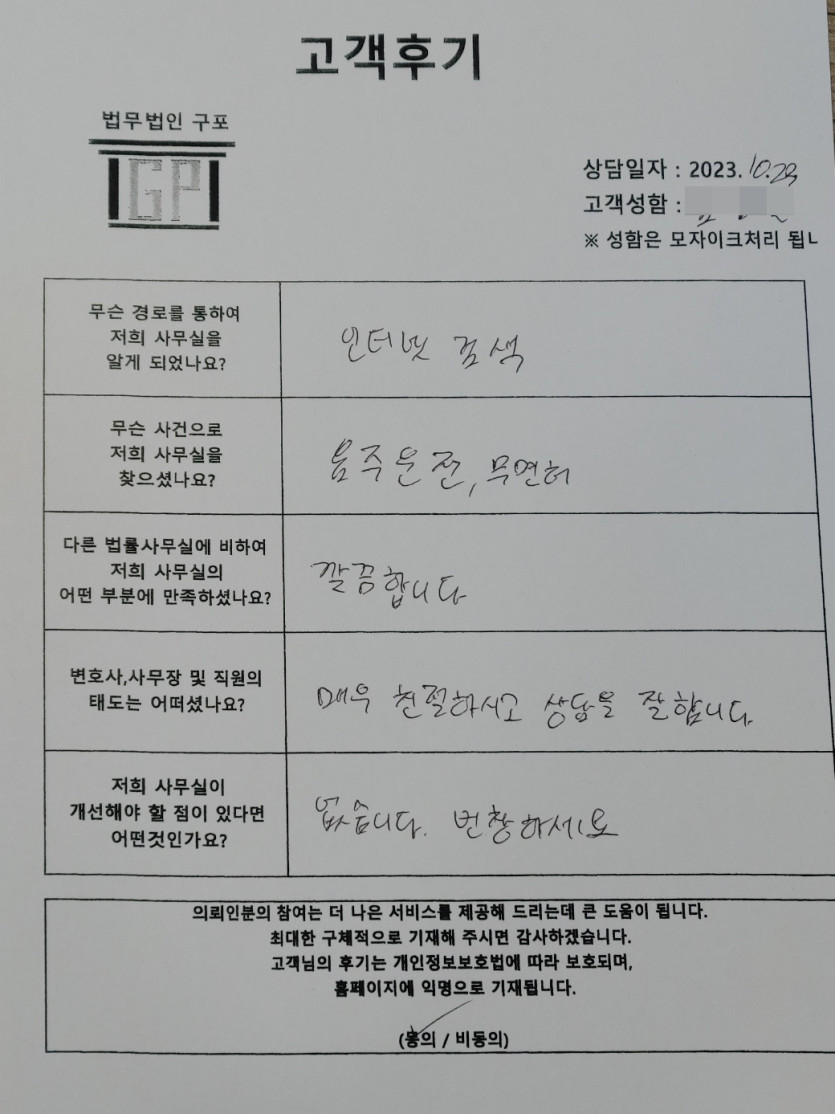 클릭해서 더보기 => 형사(음주운전,무면허 상담 ) 의뢰인분의 실제 고객후기
