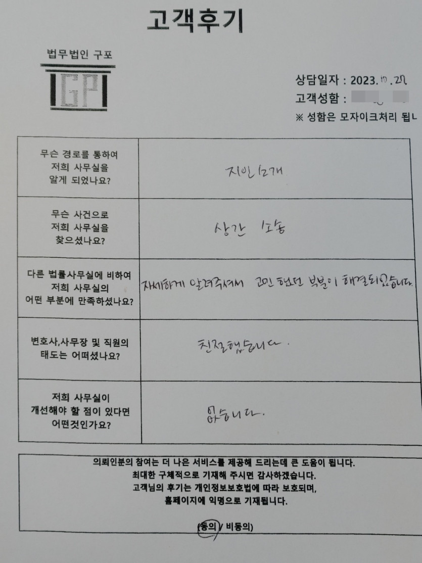 클릭해서 더보기 => 이혼(상간녀소송 상담 ) 의뢰인분의 실제 고객후기
