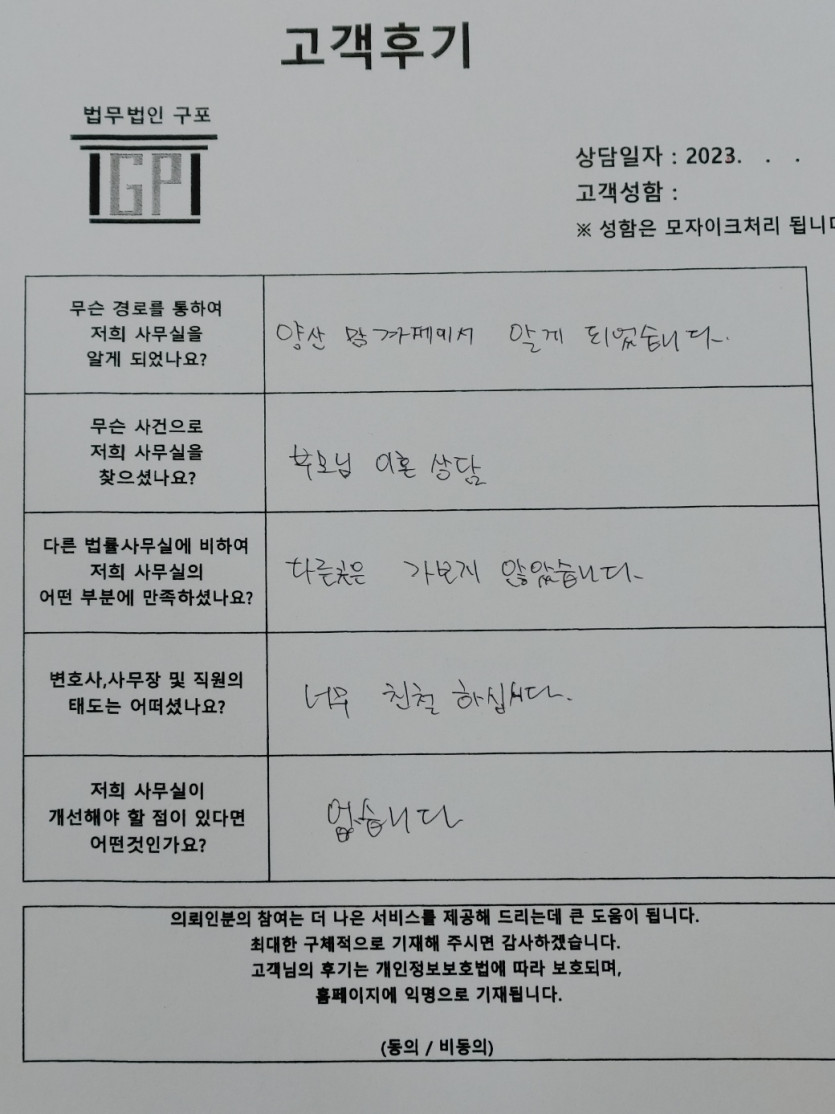이혼 및 가사(부모님 이혼 상담 ) 의뢰인분의 실제 고객후기