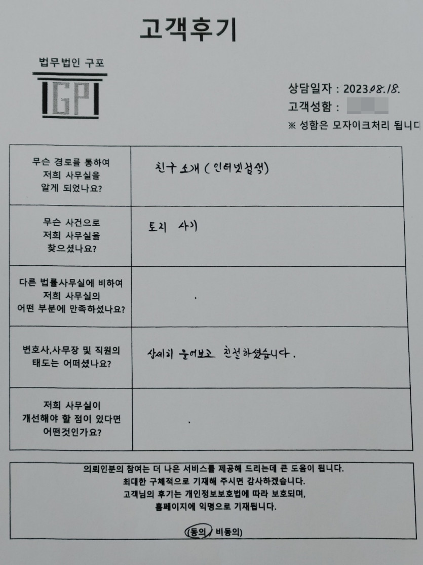 클릭해서 더보기 => 민사(부동산토지사기 상담 ) 의뢰인분의 실제 고객후기
