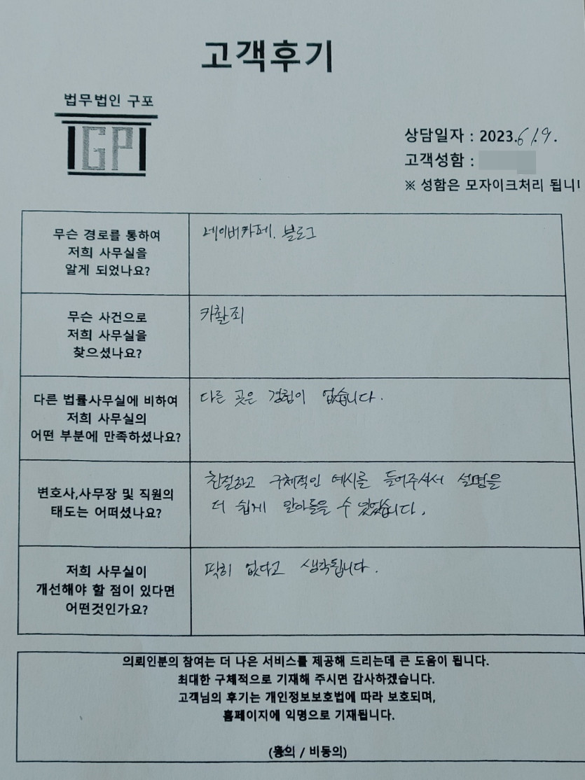 클릭해서 더보기 => 형사(카촬죄 상담 ) 의뢰인분의 실제 고객후기