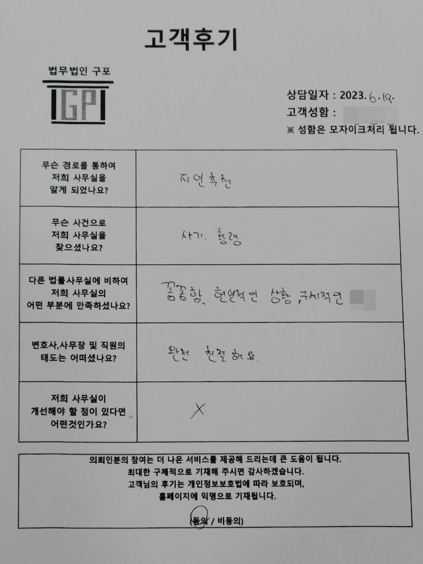 클릭해서 더보기 => 형사(사기,횡령 상담 ) 의뢰인분의 실제 고객후기