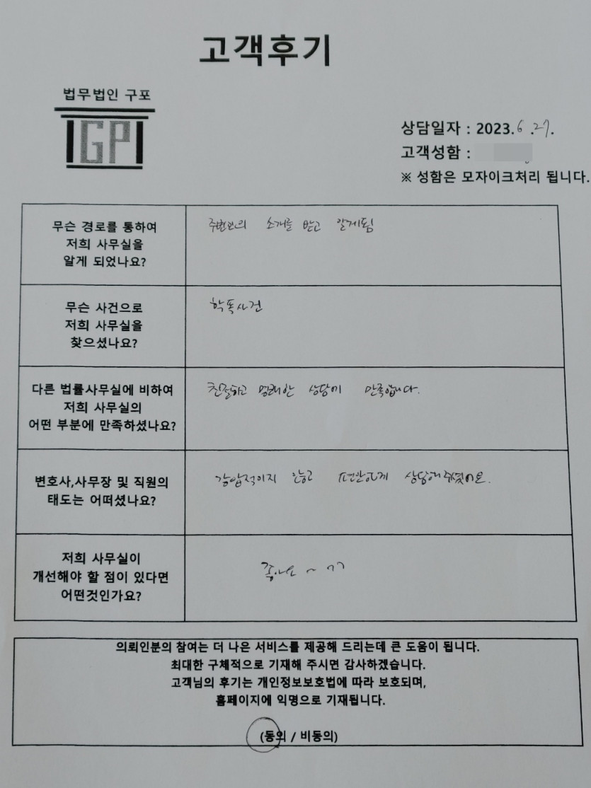 클릭해서 더보기 => 형사(학교폭력 상담 ) 의뢰인분의 실제 고객후기