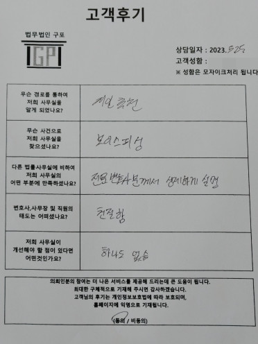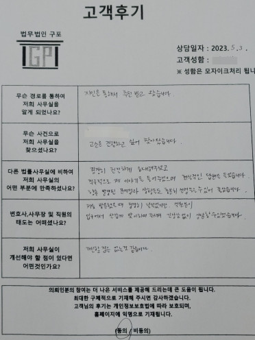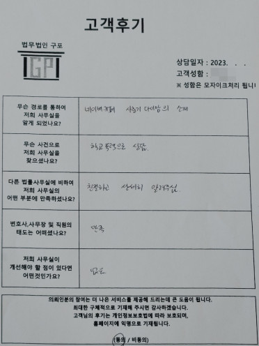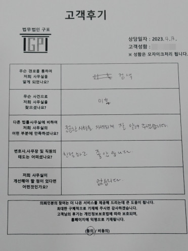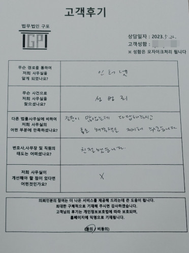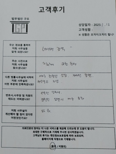 클릭해서 더보기 => 형사(형사사건 상담 ) 의뢰인분의 실제 고객후기