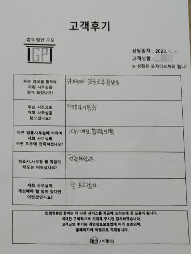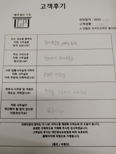 클릭해서 더보기 => 형사(학교 교권침해 상담 ) 의뢰인분의 실제 고객후기