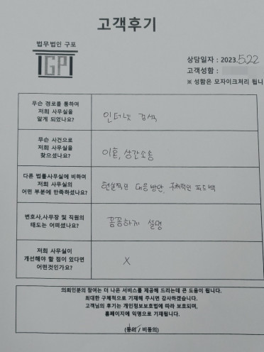클릭해서 더보기 => 민사(이혼,전세보증금,전세사기) 의뢰인분의 실제 고객후기