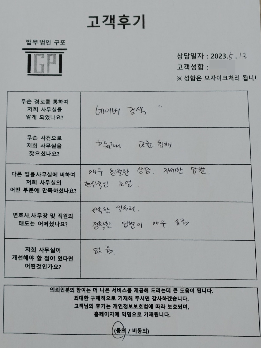 클릭해서 더보기 => 형사(학교 교권침해 상담 ) 의뢰인분의 실제 고객후기