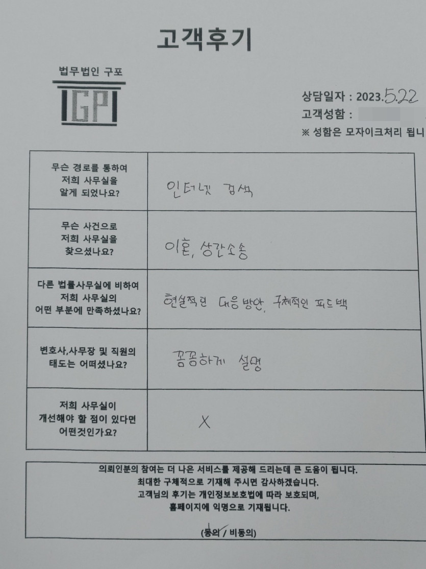 클릭해서 더보기 => 민사(이혼,상간녀소송 상담 ) 의뢰인분의 실제 고객후기