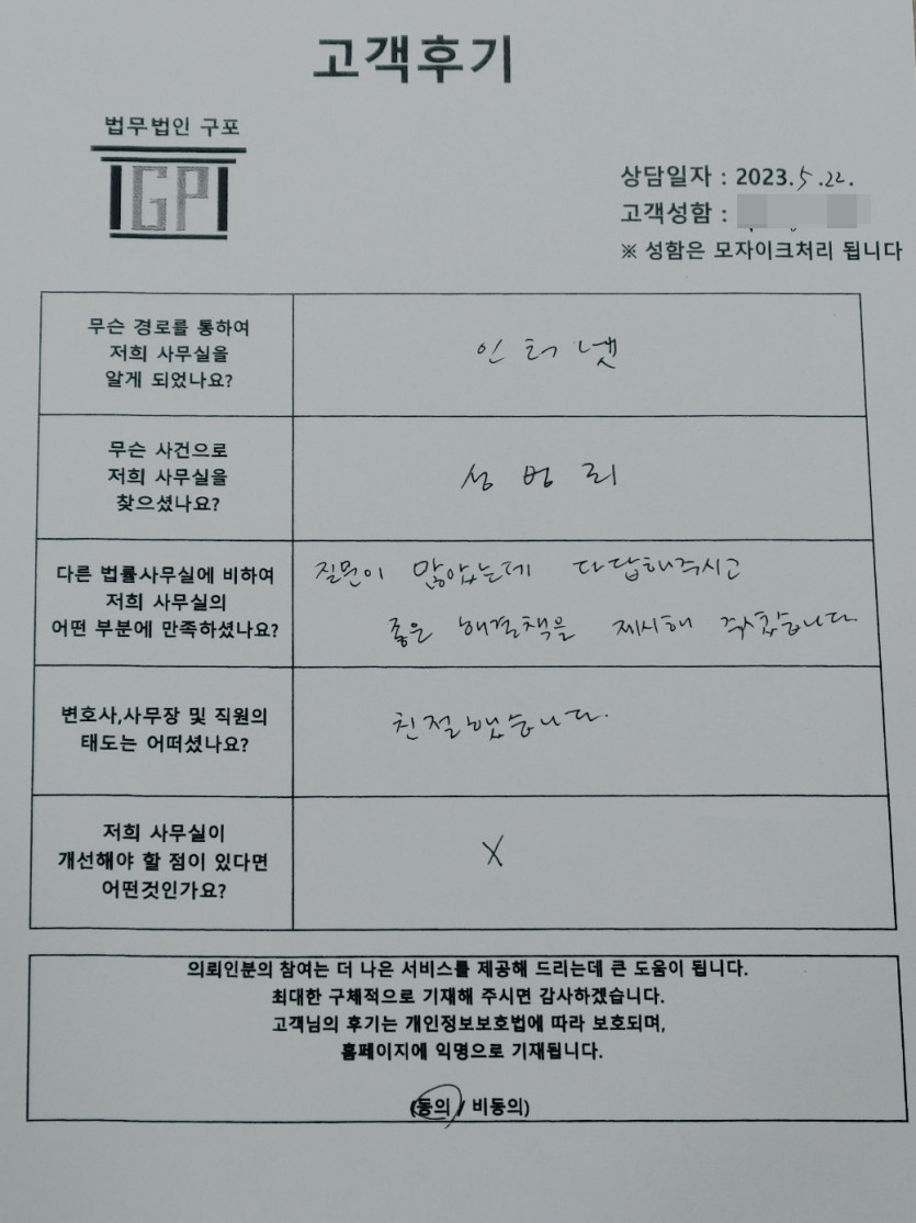 안녕하세요. 법무법인 구포입니다.