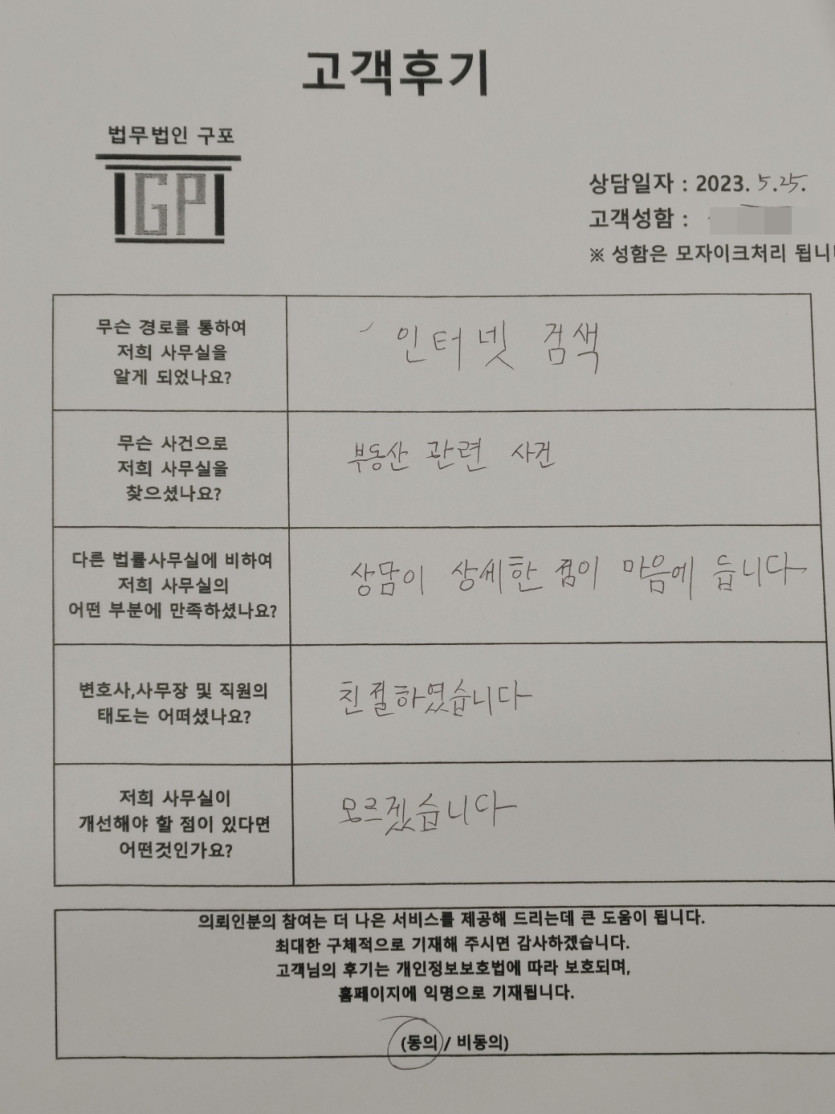 클릭해서 더보기 => 민사(부동산관련 상담 ) 의뢰인분의 실제 고객후기