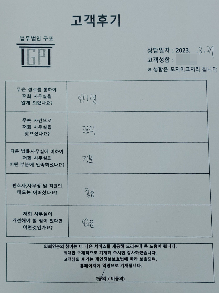 클릭해서 더보기 => 형사(스토킹고소죄 방문상담) 의뢰인분의 실제 고객후기