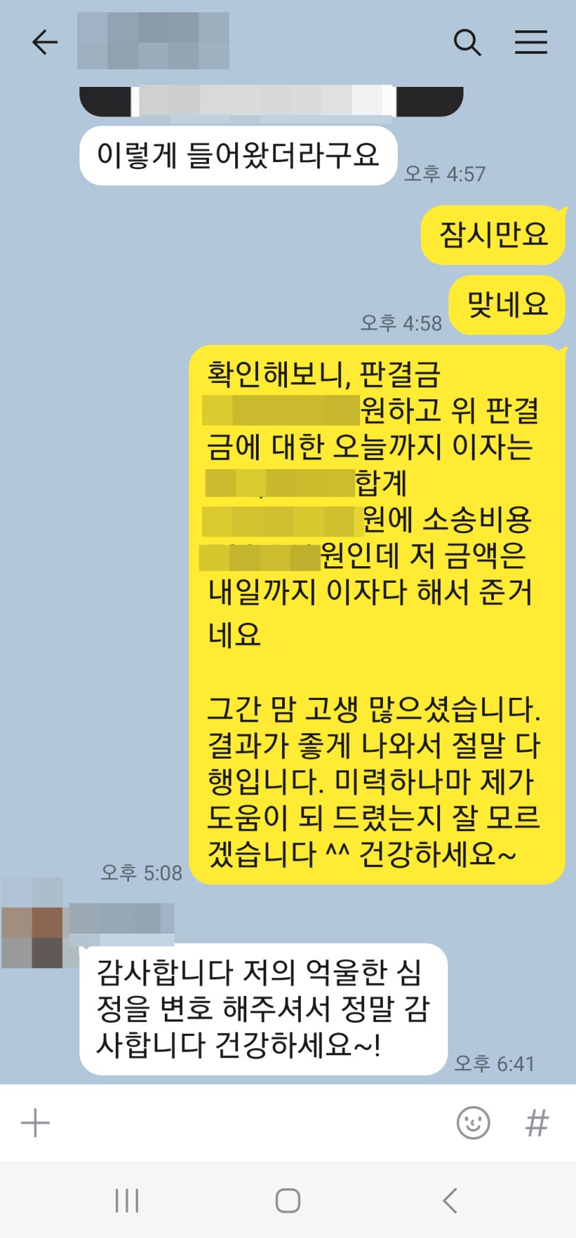 감사의 뜻으로 변호사님께 연락을 주셨습니다.