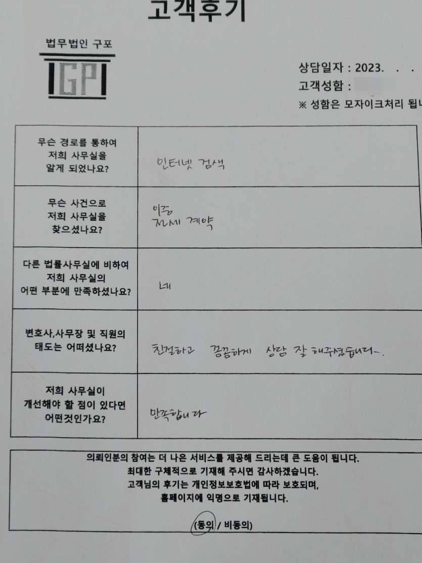 클릭해서 더보기 => 민사(전세사기관련 소송) 의뢰인분의 실제 고객후기