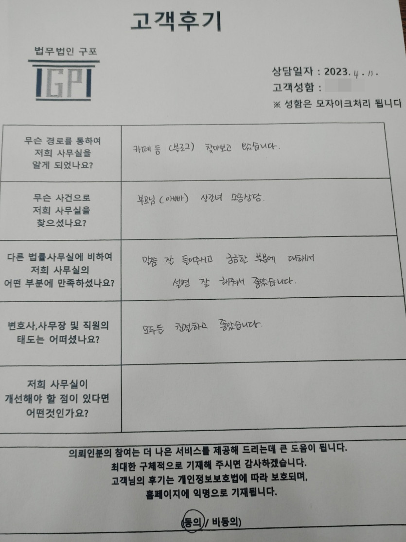 클릭해서 더보기 => 민사(상간녀 소송) 의뢰인분의 실제 고객후기